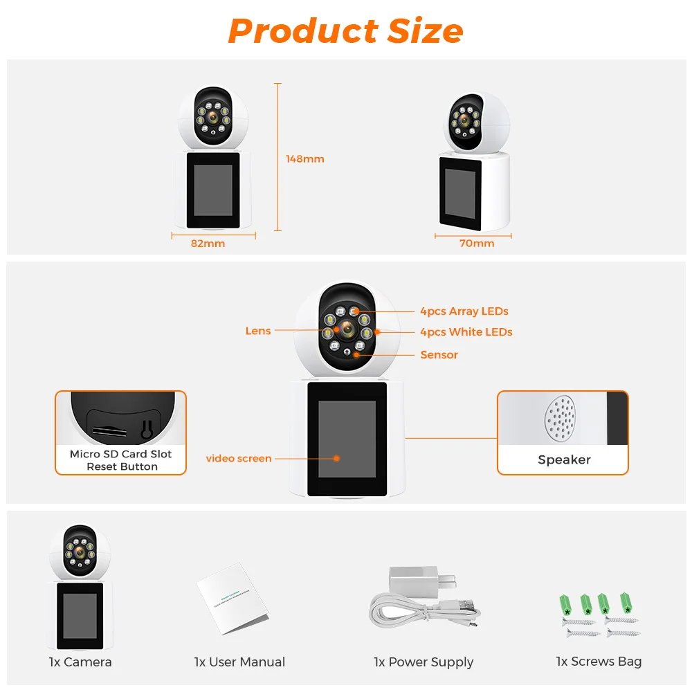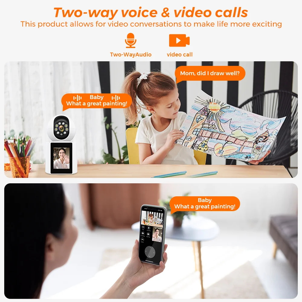 1080P Wifi Camera Baby and Elderly Monitor, 4MP Smart Home Security Camera, 2.4-Inch Screen, Two-Way Audio, Video Calling, Pet Monitoring, Remote Access for Peace of Mind
