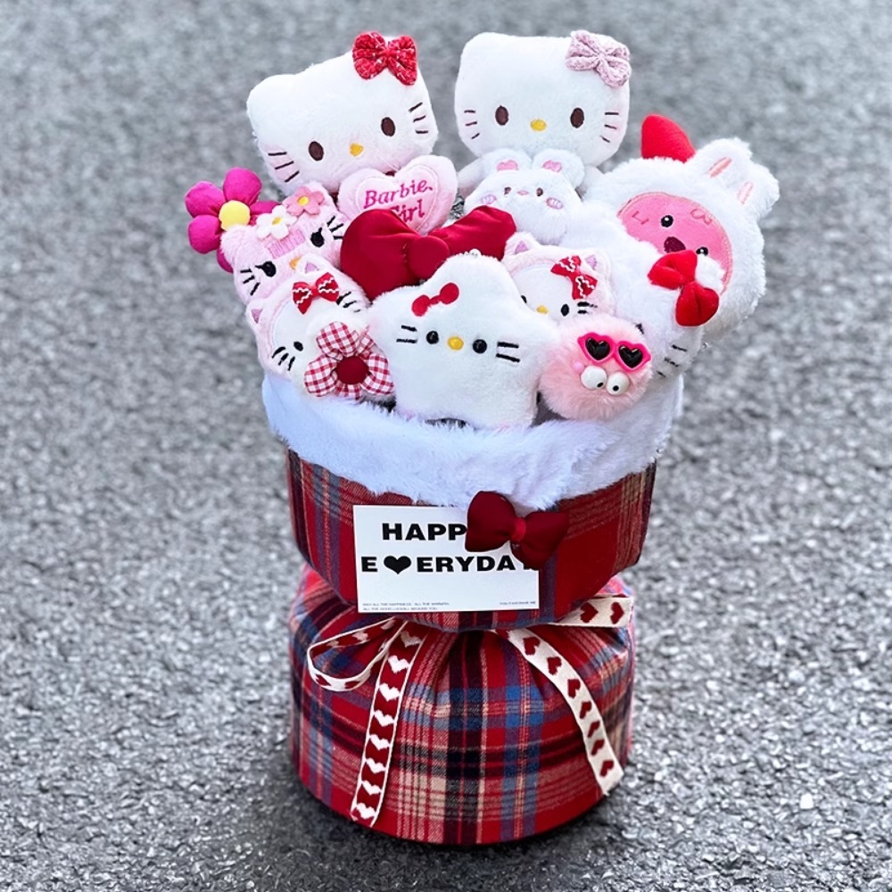 🐱 Cute Cartoon White Cat Doll: The bouquet features an adorable white cat doll, adding a playful and charming touch to your gift.