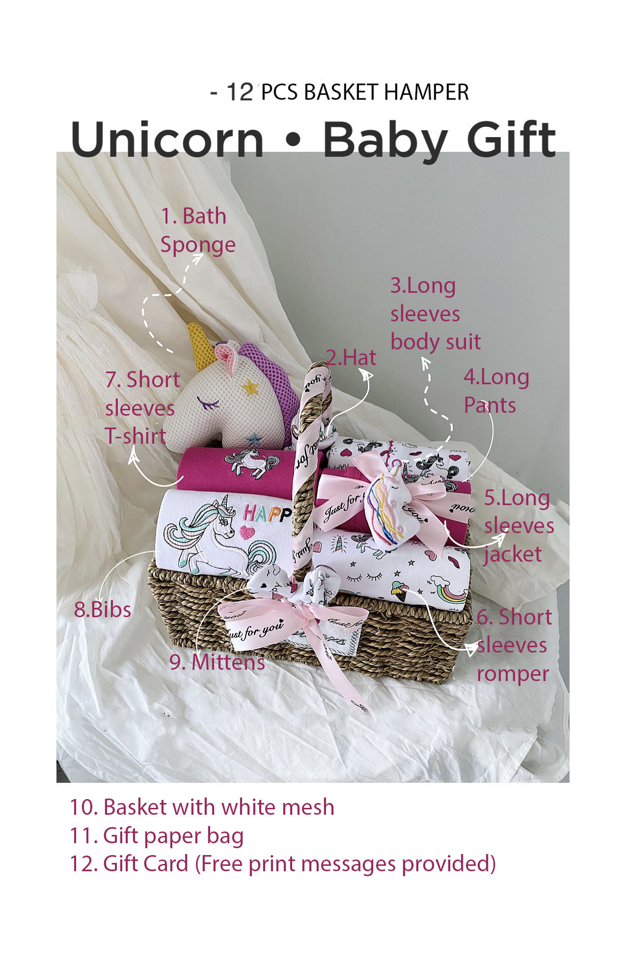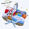 - Features: Clothes and accessories 100% Cotton* Soft Toy 100% Polyester* Fashion and Comfortable* Nice Pack and Presentable* Handmade Eco-Friendly Basket* Hold for various occasions, newborn, Full Month, 100 Days Celebrations and party…* Comprehensive pack, hat, mittens, bibs, clothes, comfort toy all baby needs* Paper Handbag include* Write warm message behalf Provided