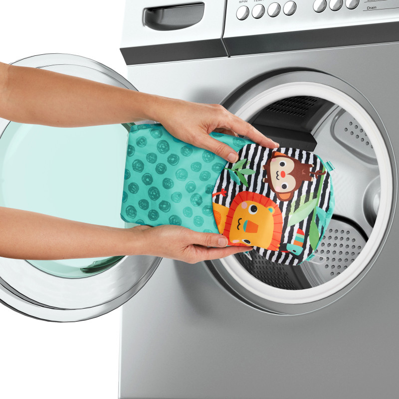 Your wild one has places to go! As your baby zigs and zags around the house in this fun walker from Bright Starts, you can cheer from the sidelines. It is safety enhanced with rubber feet that “brake” and gives your baby a sturdy frame for walking. Tippy-toes can take off at top speed while you cheer on your pre-walking tot. A steering wheel activates lights and fun sounds, which you can also turn down if playtime gets too loud (you’re welcome!). The activity center is removable, so you can play on the floor or on-the-go. Time to walk and roll!
