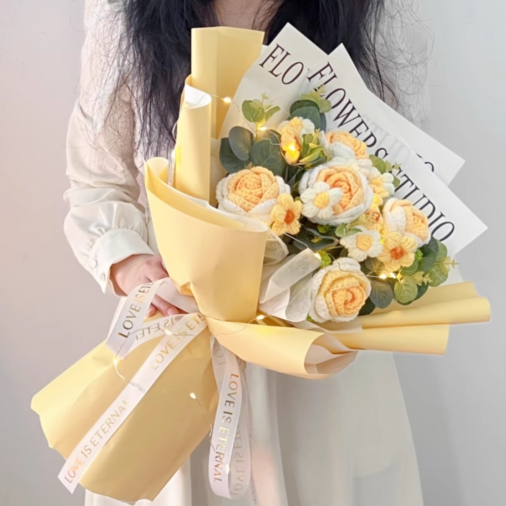 - 🎁 Handmade Creative Design – Each bouquet is carefully handcrafted with unique knitted flowers, making it a one-of-a-kind, thoughtful gift for your loved ones.