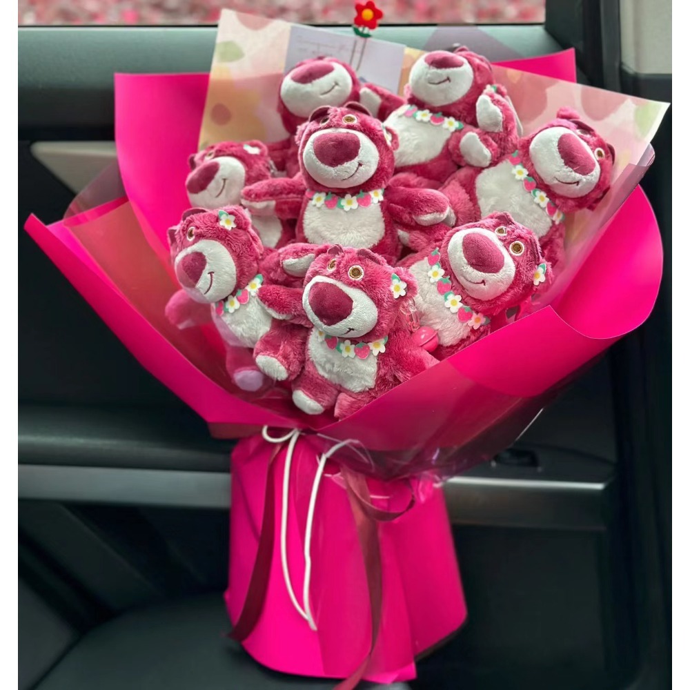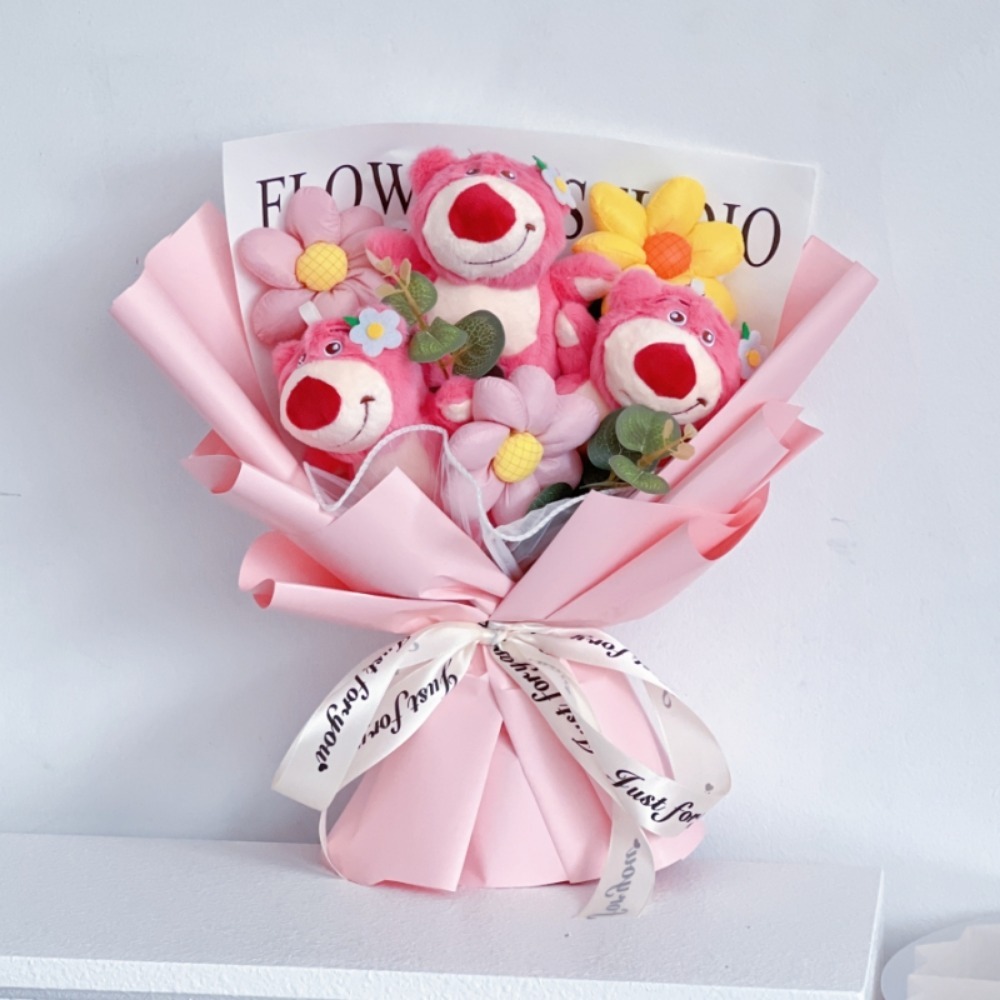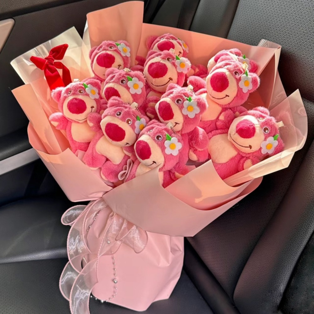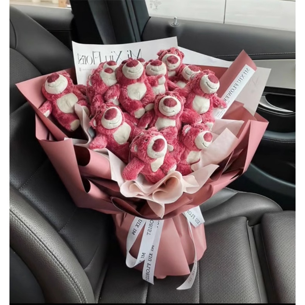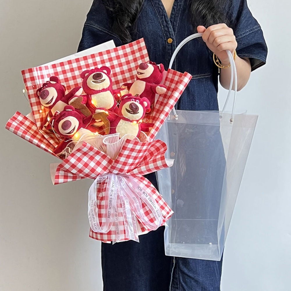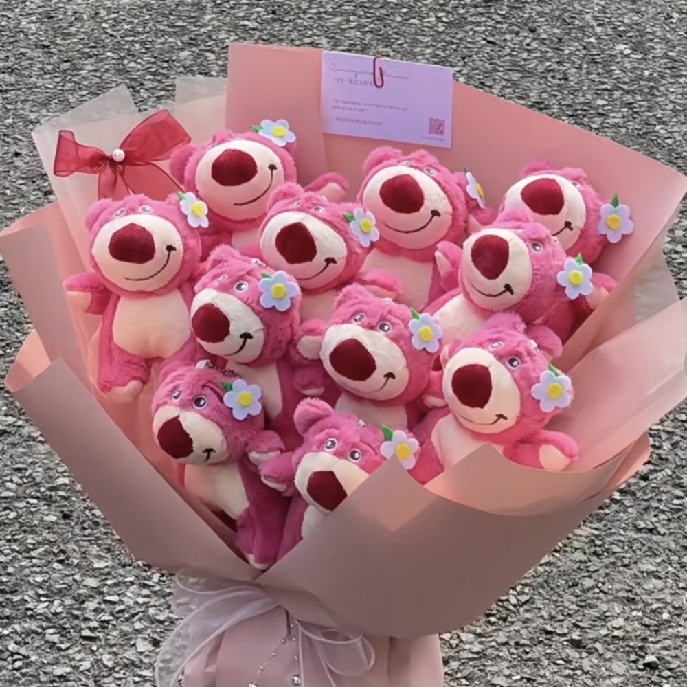 Cute Cartoon Pink Bear Doll Bouquet with Giftbag, Light String & Greeting Card – Perfect Gift for Girlfriend or Best Friend, Adorable Floral Arrangement for Birthdays, Anniversaries, and Special Occasions