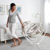 Two parenting must-haves in one smart design. The plush seat is removable and converts into a rocker with just a single easy motion. Both swing and rocker modes give your baby a secure and safe place to rest comfortably. In swing mode, toggle between 6 speeds that adjust to baby’s changing preferences. Your little one can sway in 3 different directions, and vibrating movements help soothe and keep fussiness to a minimum. Rotate the swing 180° as needed to keep your little one in sight. With an AC adapter, you can conveniently plug in the swing – no more frantic searches for spare batteries! The extra quiet motor and gentle music make swinging extra peaceful. When you need entertainment, optional smartphone connectivity plays your favorite videos and a light-up mobile dangles 2 plush toys. The foldable swing and rocker is lightweight and easy to transport, with a neutral and modern design that’s just as easy to move from room to room. Whether using as a swing or rocker, your infant can rest easy in this smart seat from Ingenuity.
