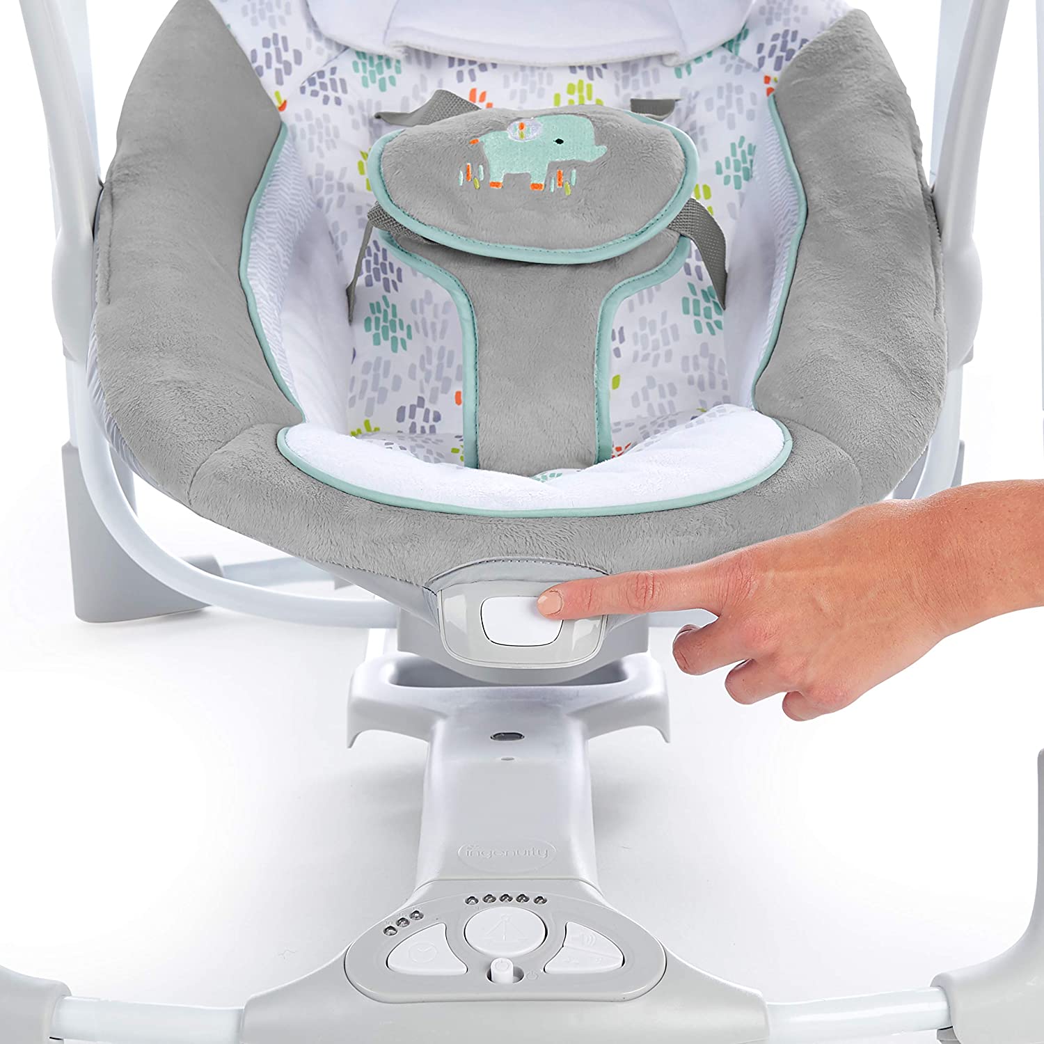 Your newborn can swing or sit in comfort with the ConvertMe Swing-2-Seat from Ingenuity while you get a few hands-free minutes back in your day. When your infant wants to sway, the automatic swing setting will calm and comfort. Convert it into a stationary seat with our secure EasyLock system. This travel friendly baby swing features a foldable design so it can lay flat for easy storage and portability. Soothe your little one with 12 melodies and 4 nature sounds, or keep him entertained with the pivoting toy bar. Wherever you need to go, this compact and take along swing-to-seat is ready for the ride. Use from age 0 to 9 months.