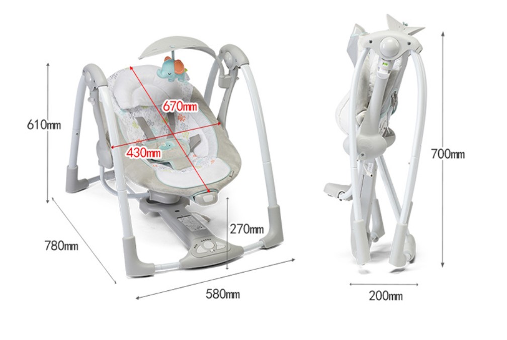 • Features 5 swing settings, automatic swinging and vibrating