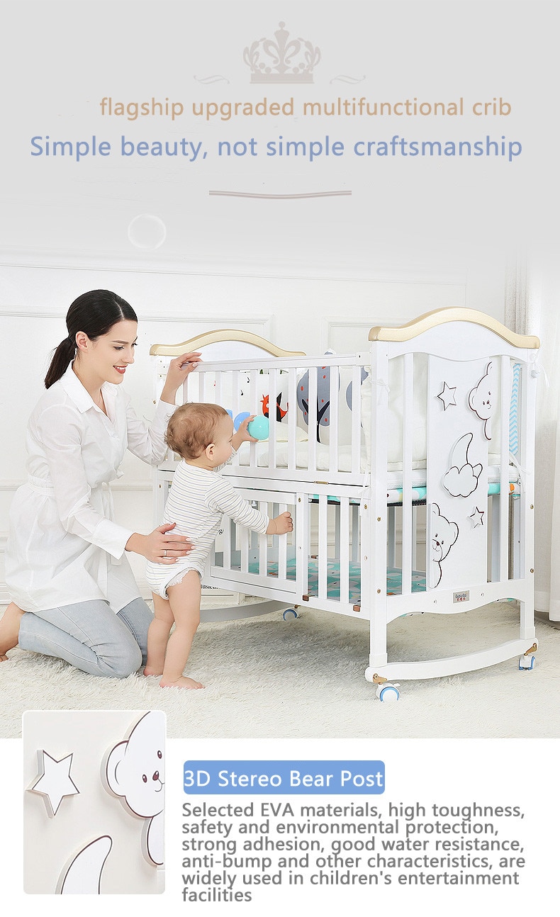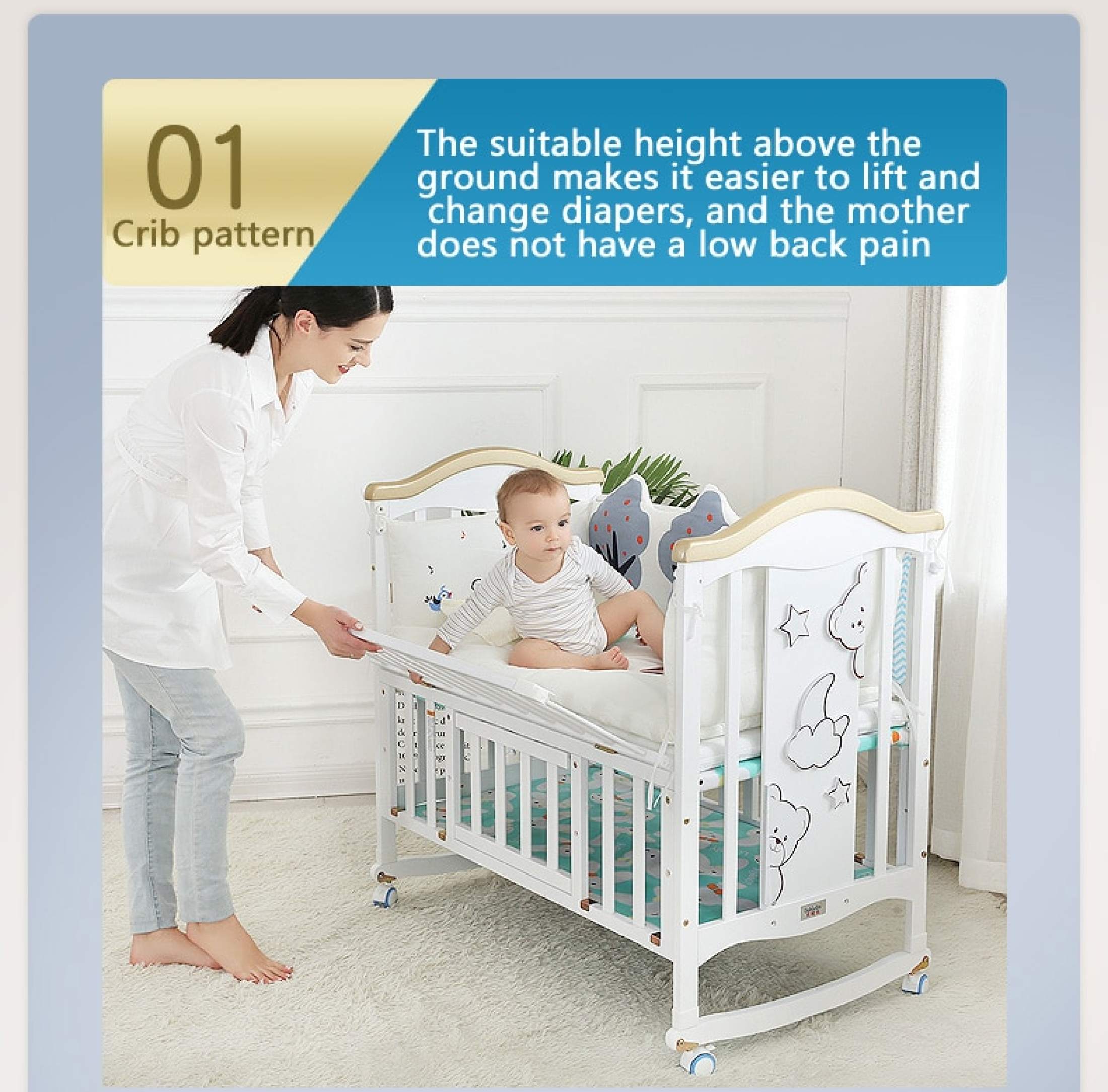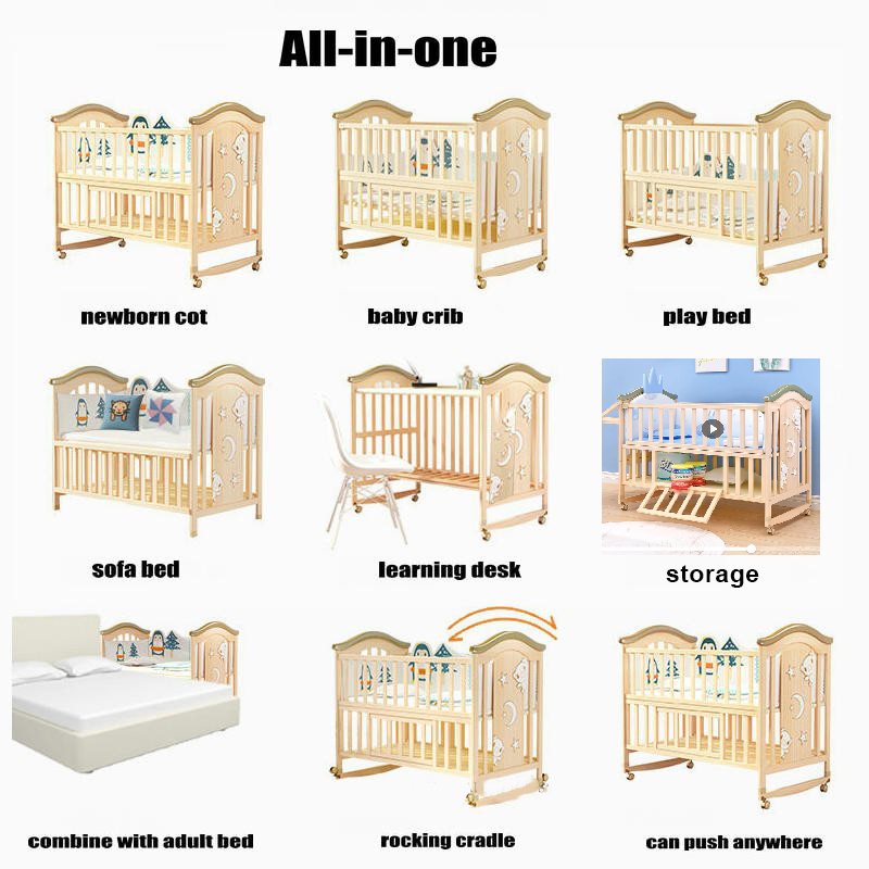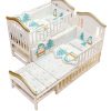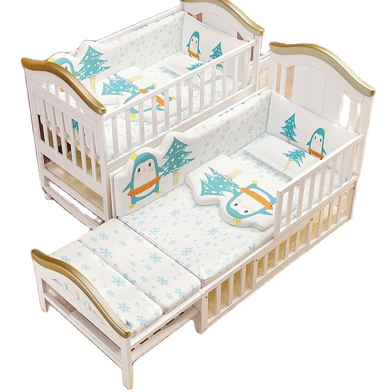 Newborn Baby Cirbs Solid Wood Multifunctional Baby Cots White 0-12 years Kids Bed Cradle Bed Neonatal Stitching Bed With Bedding Cartoons infants Bed