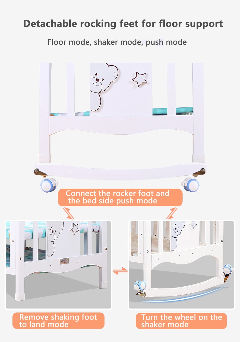 5. The crib can be changed into a shaker mode and a floor support mode.